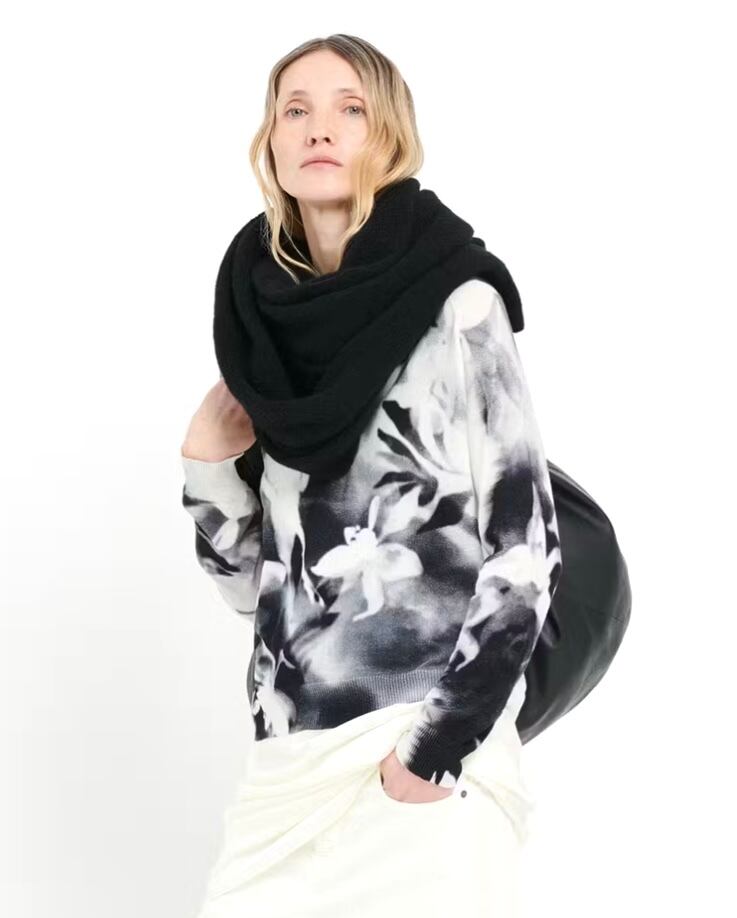 ブラック&ホワイトのソフトフォーカス花柄プリントが特徴です。ワイドVネックとリラックスフィットのデザインで、暖かく快適なコットン素材を使用し、秋の始まりに最適です。リブ編みのVネック、ややドロップショルダー、リブ編みの袖口が付いた長袖。リブ編みの縁取りが施されたワイドストレートヘム。軽くて柔らかな手触りです